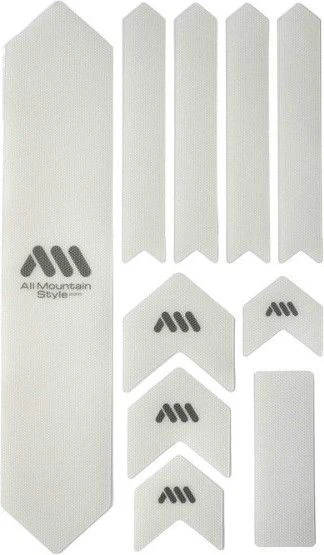 - 10 parts for a universal protection system: 1 big part for the down tube; 4 arrow parts for extending the down tube protection or top tube, 4 parts for the chainstay; 1 rectangle for cable wear protection or other uses.