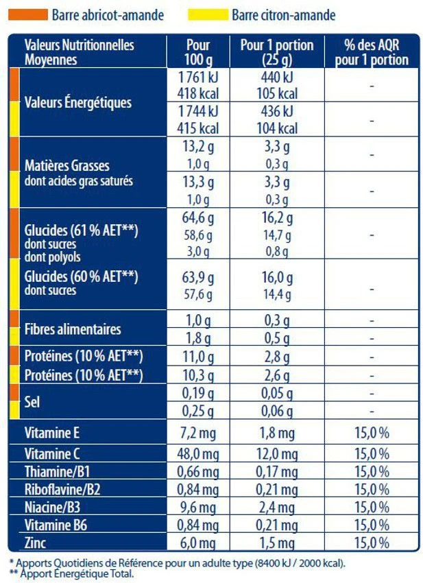 citrique, sulfites), dextrose, Prolacta® (6 %) (isolat de protéines solubles natives du lait), stabilisant (glycérine), sirop de glucose, jus concentré de citron, arôme, arôme naturel citron, vitamines (C, B3 , E, B2, B6, B1), sel, correcteur d’acidité (acide citrique), conservateur (sorbate de potassium), gluconate de zinc, antioxydant (extrait de romarin, tocophérols (soja)).