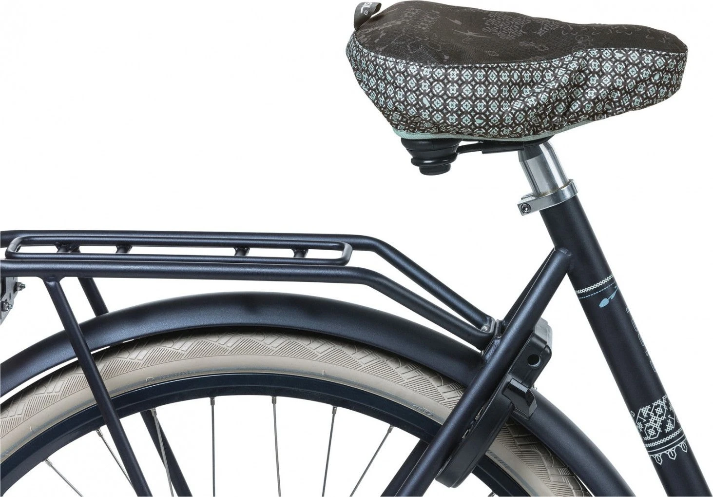 The Basil Bohème Saddle Cover is a trendy seat protector for bicycles. This stylish selection is available in a versatile charcoal shade.