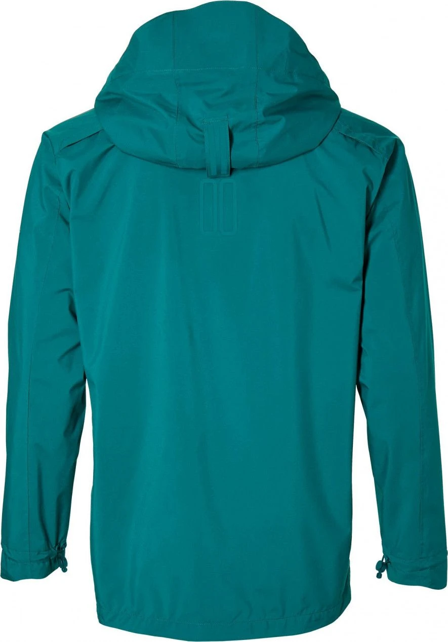 Get on your bicycle more often, thanks to the eco-friendly Basil Skane raincoat for men. The jacket in the colour teal green has been developed for commuters who like to get the most out of their ride. This means that the raincoat has a perfect fit: no flapping, but nicely secured during a high-speed bike ride. This is partly due to the use of 2-way stretch material. In addition, the jacket has an extended back and preformed sleeves with an extended top. The Skane raincoat is breathable, water- and windproof: T-Fabrick 10.000 WP and 10.000 MVP. This, together with the waterproof zippers, the extra lining, gutter and the DWR coating, makes sure that the rain is removed from the jacket and the inside doesn’t become clammy. The jacket has a mesh/taffeta lining, side pockets and a chin guard. The three-piece hood is adjustable, so you have good visibility. You can also use the hood when wearing a helmet. The hood is adjustable on the collar, useful for a helmet or a bulky hairstyle.