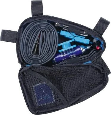 Between the tubes of your frame is an endless space of possibilities the carry some cargo with you. The CornerCaddy allows you to use that space. Due to the 4 velcro straps the CornerCaddy is easy to attach on several places in your frame. The blue interior makes it easy to find your stuff and you can use the separate compartment for some bars, your keys or other small stuff. Use your bike space to the limits with the CornerCaddy, he is there for you!