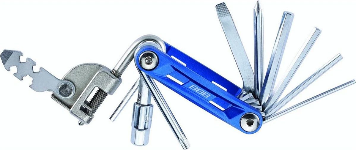 - Hex keys (2, 2.5, 3, 4, 5, 6 and 8 mm), Philips and flat screwdrivers, T25, Chain rivet tool, Spoke wrenches, Pad spreader.
