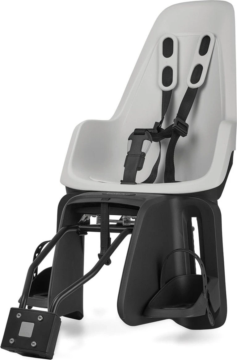 The Bobike ONE is an entirely new child safety seat for the bike with a sleek and modern Dutch design. The double-walled design and the colorfast material also makes it a very durable and extra safe children’s seat. Instead of a cushion, the Bobike ONE feautures a comfortable seat of water-repellent material. The shoulder straps are soft and comfortable. And the footrests are easy to adjust without the use of any tools. The rear seat offers our Click & Go mounting system for quick installation and to easily place the seat on a different bike. Obviously the Bobike ONE meets all applicable safety standards for safety seats.