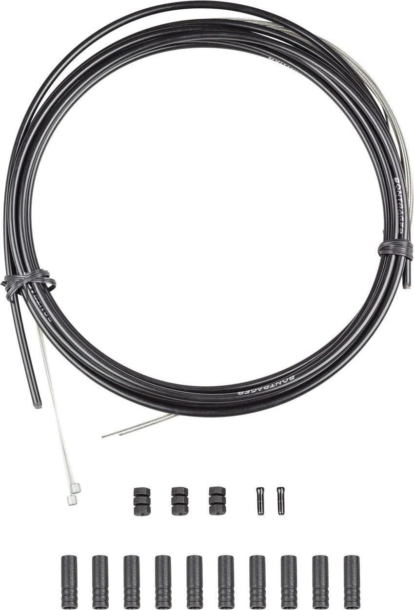 Kit includes lubed housing, pre-stretched stainless steel cables, ferrules, cable frame protectors, and cable end caps for front and rear shifting.