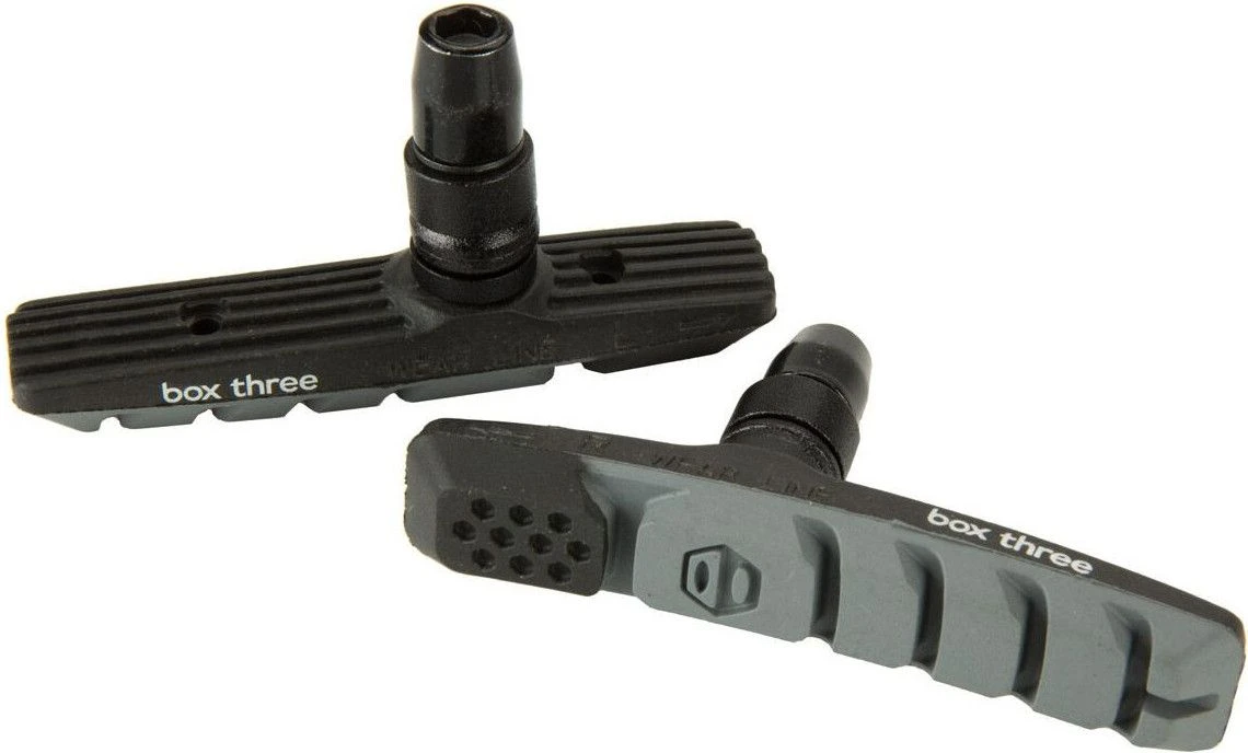 With a stiff, one-piece, co-molded design, Box Threeâ„¢ Air Flow Brake Pads provide excellent stopping power and are the perfect choice for your next build. They include two-tone, dual-compound pads that feature a unique finned design that helps improve air flow. Pivoting posts aid installation and make toe-in adjustments simple and easy.