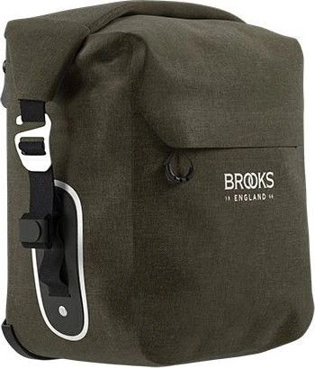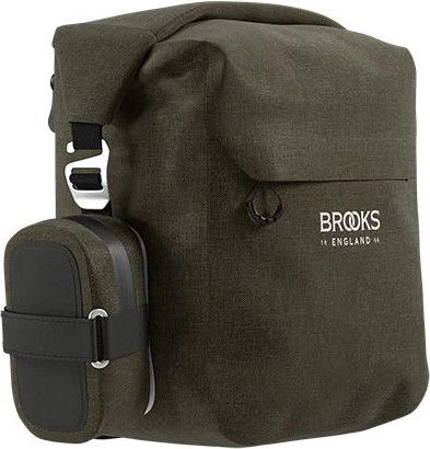 The Brooks Scape Small Pannier is a 100% welded waterproof (IPX4 certified) bag with a roll top closure and weatherproof details, perfectly at home on the front or rear rack. Made to last, this modern bag for cycle touring is constructed from hard-wearing details and specially selected components like the external pocket with protective flap that increases the capacity of the bag while helping to organize its contents. The bag also offers special modular functionality to attach other bags from the Scape range thanks to the lateral daisy chain. Provided with the aluminium Klick Fix® attachment system for easy fastening to most rack systems.