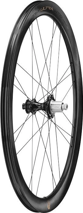 Campagnolo’s CULT ceramic bearings rotate effortlessly inside the carbon front aero hub and aluminum rear hub.