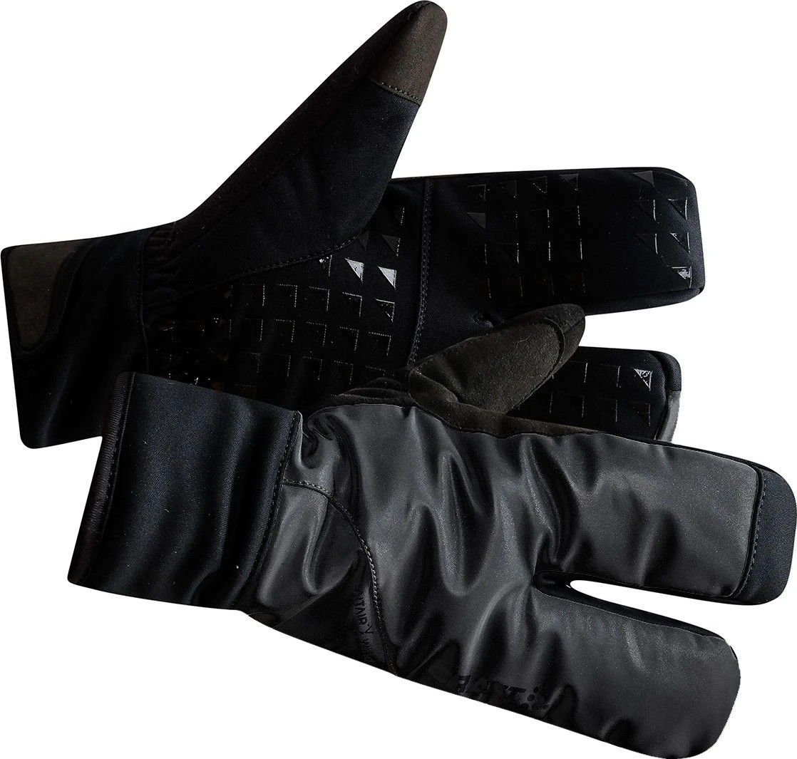 Gloves 3 fingers warm sib nois 2.0 for cold conditions. Wind and beaded fabric on top and inside fleece for warmth. Silicone printing in the palm for grip and velcro adjustment. Fabric sponges on the thumbs. Re flective impressions.