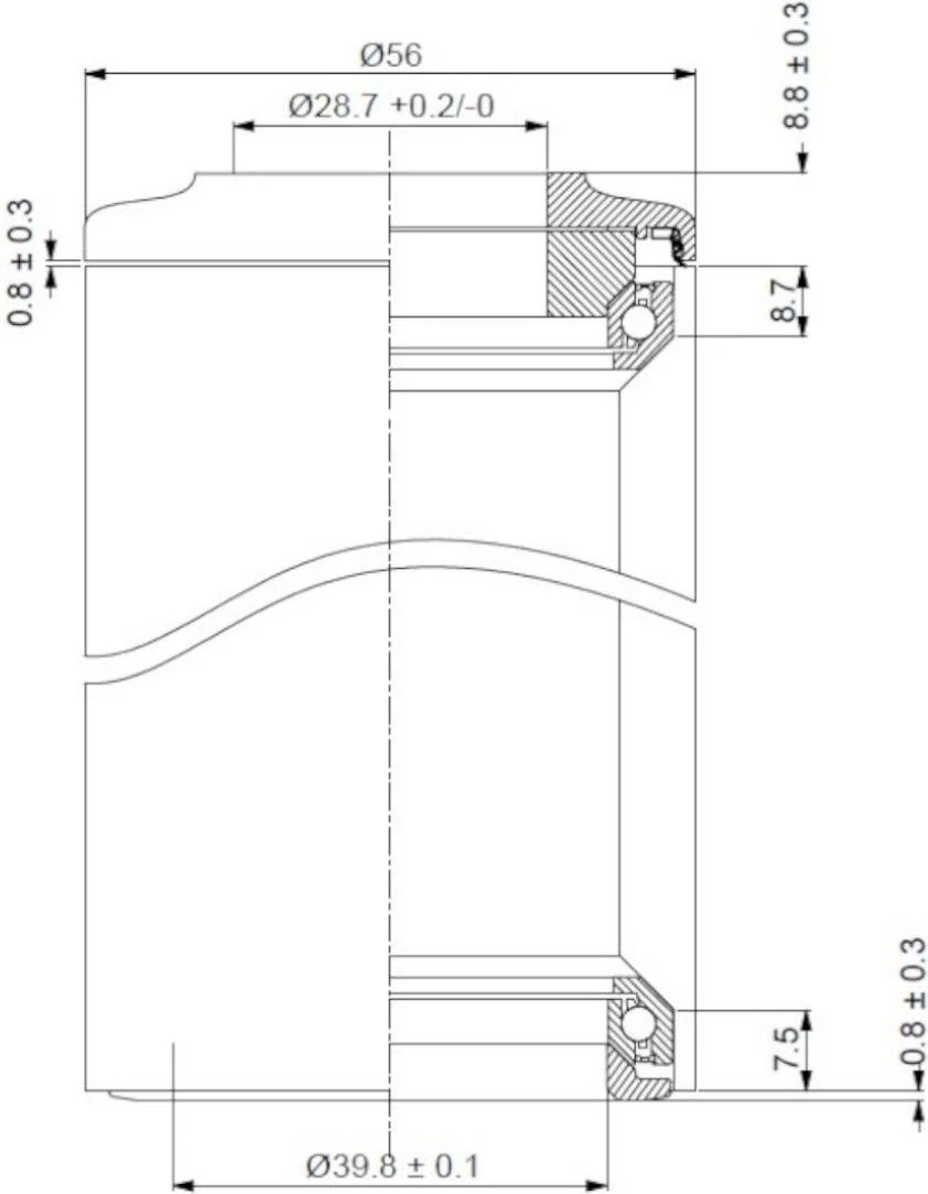- Bearing height: 9.6 mm (8.8 + 0.8)
