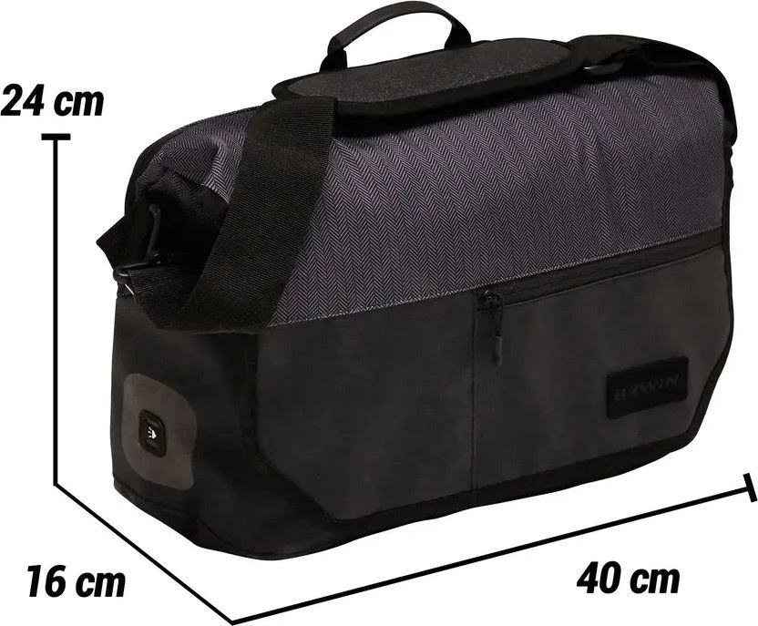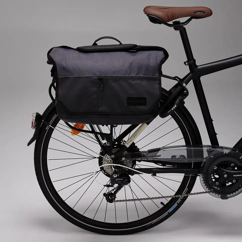 A saddlebag / messenger bag that attaches to the luggage rack when you ride and that can be carried over the shoulder when you leave your bike. Switch from cycling mode to pedestrian mode in two quick gestures.