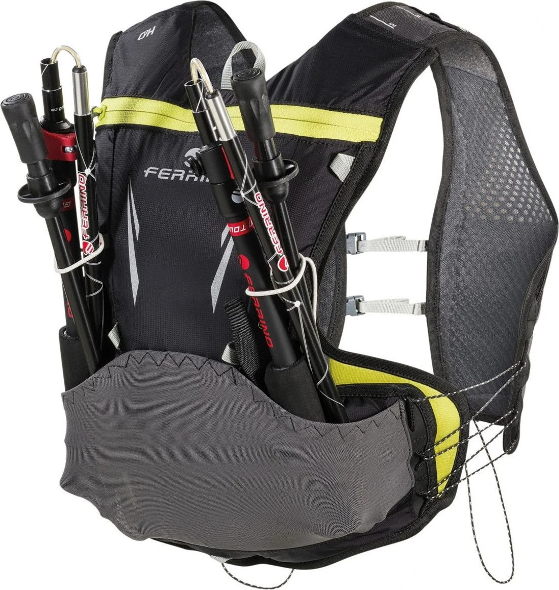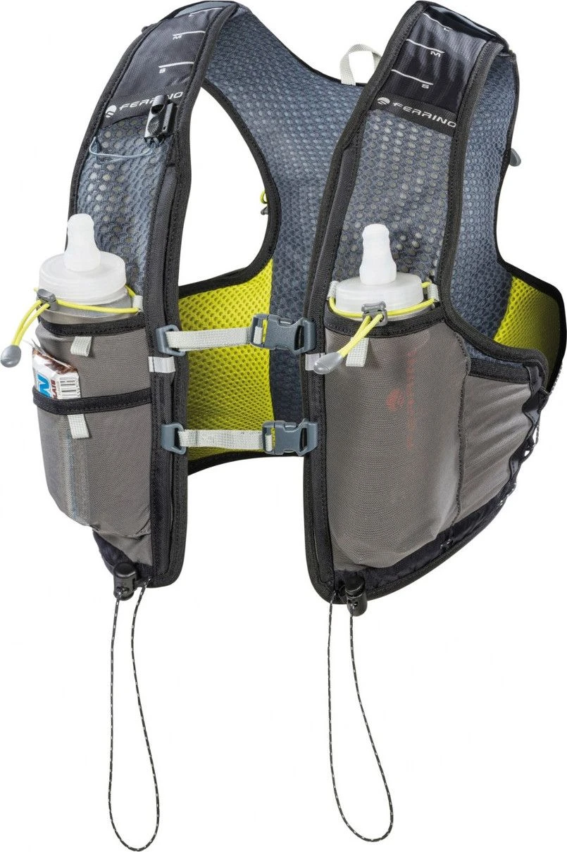 - Pockets: two flask holders in mesh on the shoulder straps, side pockets on shoulder straps, large front pocket in mesh