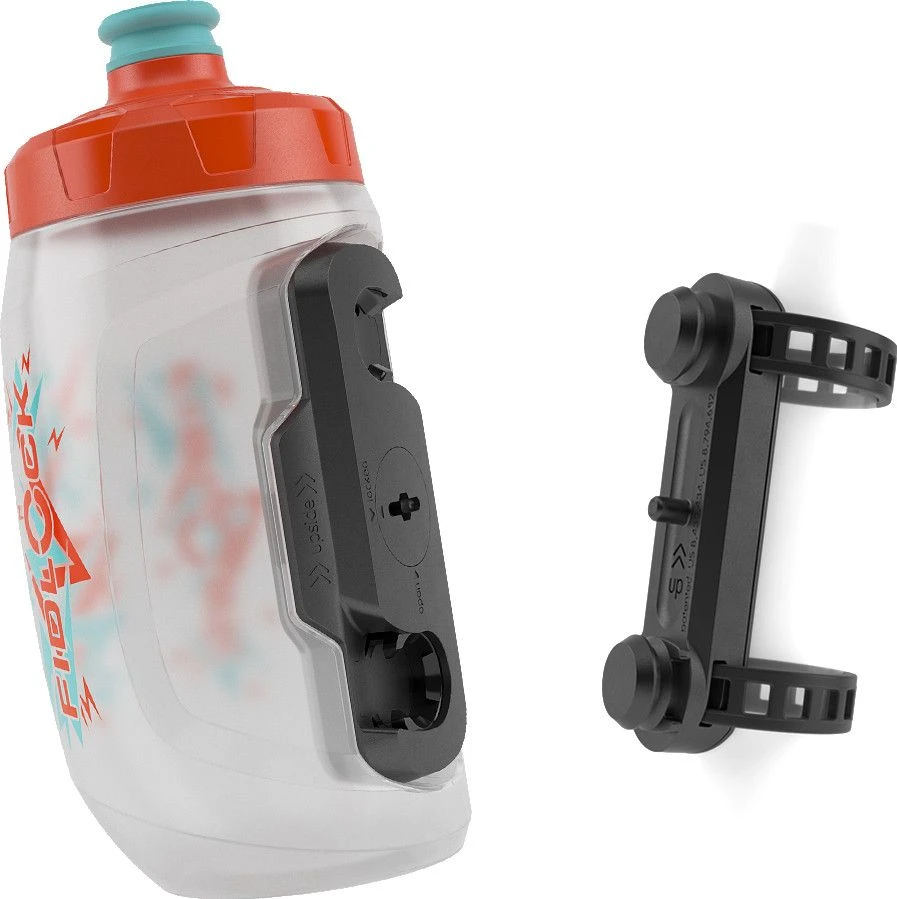 The Fidlock Twist Bottle 450 Kids is perfect for small kids bikes that have no space or bottle braze-ons for conventional bike bottles. Because this compact bottle with the magnetic-mechanical mounting system fits even the smallest frames. The colourful and striking design with lightning bolts in combination with the fun of magnets lets children eyes shine.