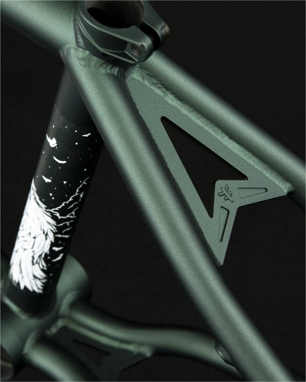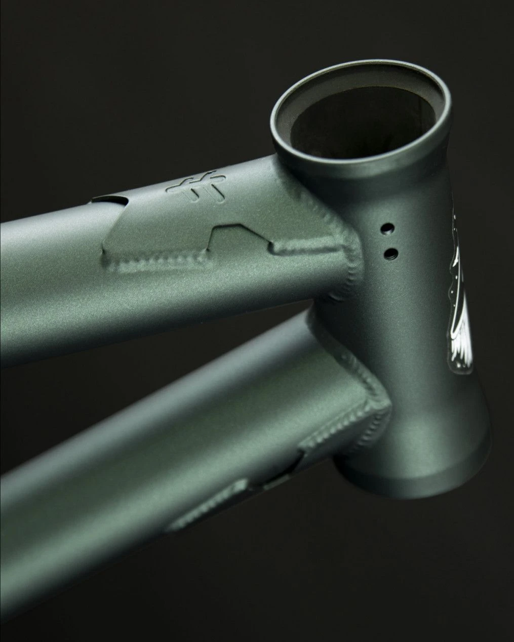 Made of 4130 chrome with tube specs designed to help reduce overall weight without sacrificing strength, the frame features internal and external braces, multi-thrust and tapered tubes, an Investment Cast seatpost clamp with system Horizontal Cut, removable M8 style brake mounts and 6mm thick Investment Cast dropouts with integrated chain tensioners.