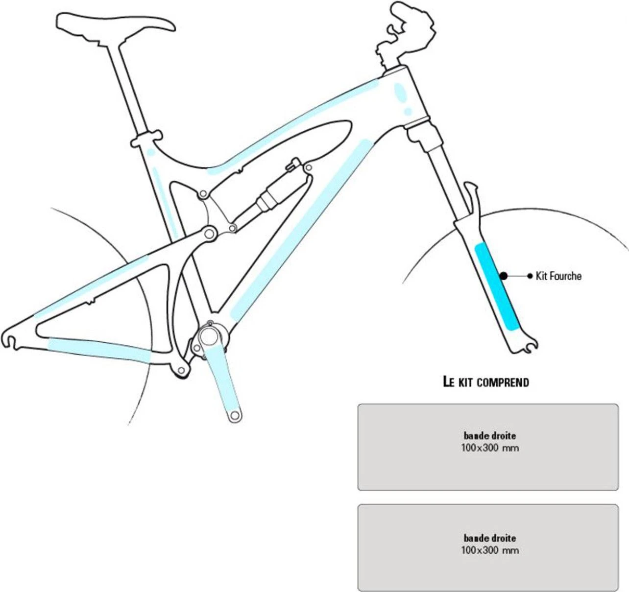 The YTWO kit for fork allows protection of the sleeves, it has 2 pieces of 100x300mm PVC of 0.30mm of thickness to ensure an effective protection in the places most exposed to the impacts. A great way to protect its components and preserve its resale value.