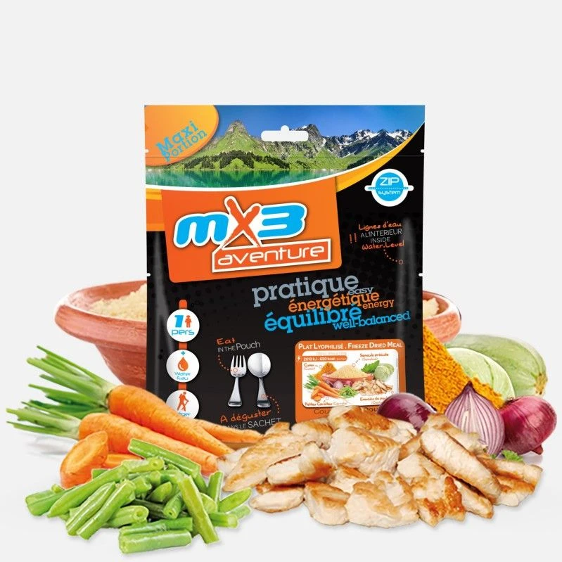 With its delicately spiced meat and Mediterranean vegetables, this freeze-dried chicken couscous will inevitably make your taste buds travel! Its combination of lean meat, vegetables and a starchy food makes it a very balanced dish after a day of walking.