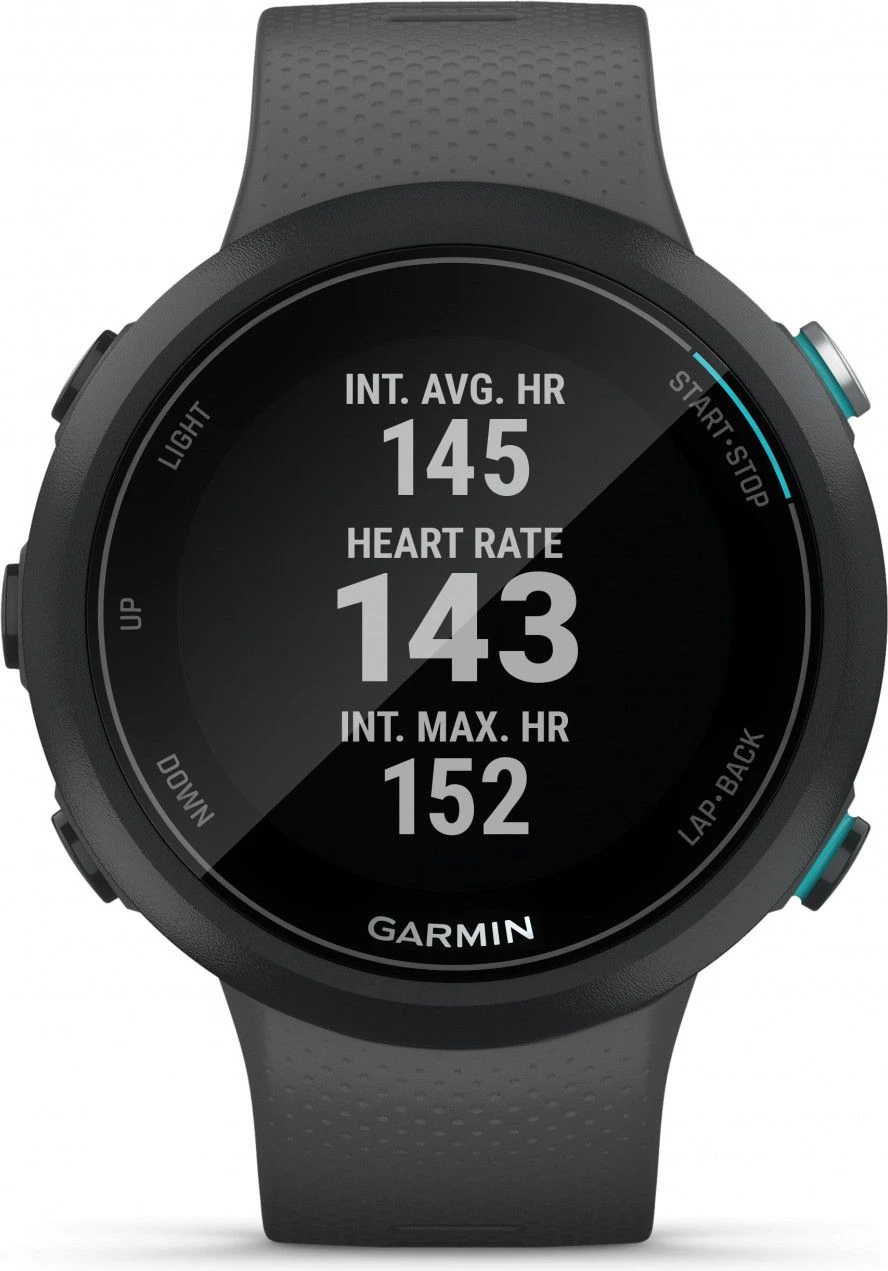 - Pool swim mode: records distance, pace, stroke count, stroke type and SWOLF (gauges swimming efficiency).