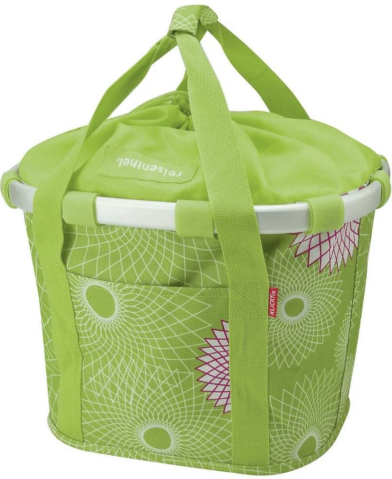 The stylish Reisenthel basket has a unique metal hoop that accommodates the KLICKfix attachment.