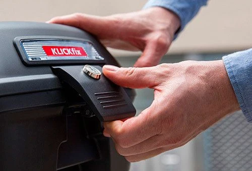 Citybox introduces yet unknown quality and functionality to bicycle boxes. The robust and rainproof box with integrated handle, reflector and high-quality lock offers secure storage for helmets, rain jackets and everything in between. By virtue of its offset hinge, the spacious Citybox can be opened completely even when installed on the bike without the saddle blocking the lid.