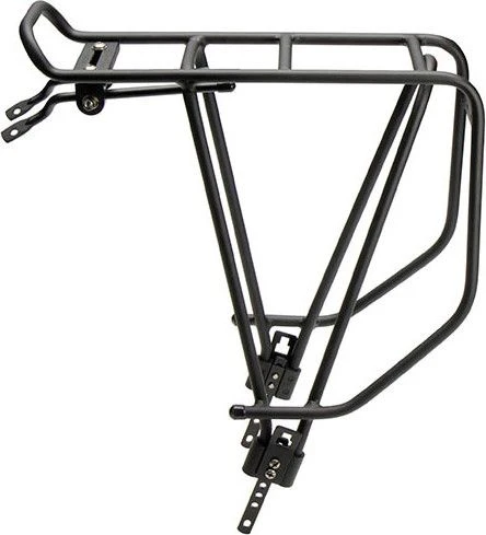 Rixen & Kaul Aluminium rack for 26″ and 28″ bikes. Secure and easy mounting with 4 srews. Especially designed for combination with rackpack adapter bags. Includes rear-side plate for reflector or backlight. Good side supports for bags with fold-out compartments or Sidebags. Max. load 25kg.
