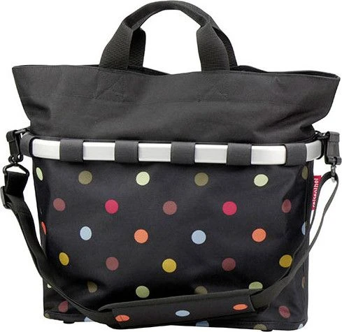 The oval Bikebaskets Version for racks. The adjustable and easy to use Klickfix fixation ensures a secure fit on a variety of racks. Equipped with sporting generous space and a closable collar, the Bikebasket Oval M is an ideal shopping companion. Contrasting collar with handles and zipper. Zipped inner pocket and detachable shoulder strap. Extremely stiff due to its aluminium bracket and inner metal frame.