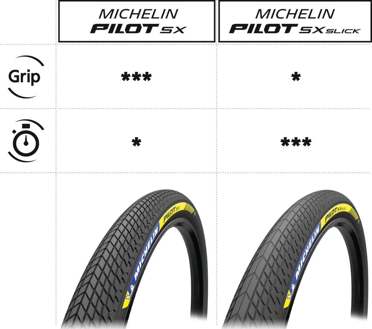 An uncompromising range for BMX race wins. The Michelin Pilot SX has been designed for extra grip while cornering, particularly on hard-packed or dusty terrain. Tubeless Ready technology reduces rolling resistance for optimal performance.