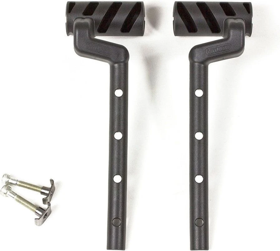 The Ortlieb multifunctional two part mounting support creates additional space on the handlebar, e.g. for light, speedo, navigation device or e-bike display. The set consists of a left and right support; it can be mounted as a pair (e.g. required for Bosch e-bike displays) or individually. The supports are adjustable in height and allow simultaneous use of a battery light and an Ultimate handlebar bag.