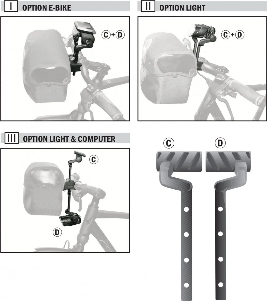 - Attachment solution for Ortlieb handlebar bags in combination with light, e-bike displays, bike computer etc.