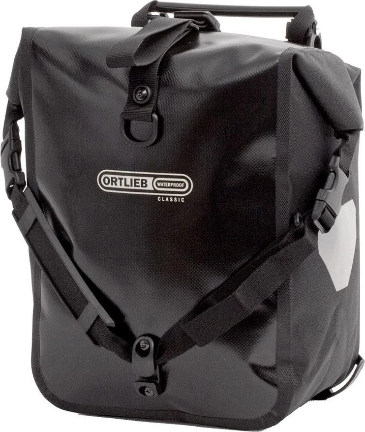 - ORTLIEB’s far travelled classic model made of robust polyester fabric is designed for lowriders in the front or for the rear rack, and is also suitable for children’s bikes.