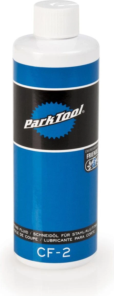 A quality cutting fluid should be used when performing any cutting, tapping, facing, threading, or reaming procedure. CF-2 Park Tool Cutting Fluid is an environmentally friendly, soy-based cutting fluid that makes any frame cutting tool work better and last longer. Park Tool CF-2 can be effectively used on all metals. 8 oz. plastic bottle with a flip-top spout.
