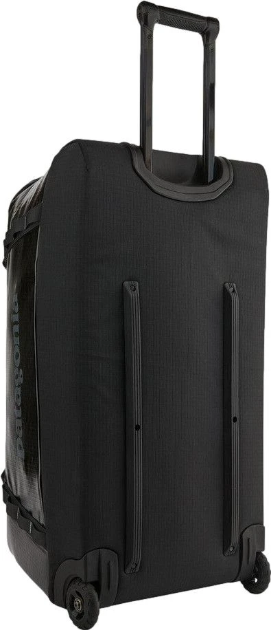 Extremely weatherproof travel bag with sturdy wheels and telescopic handle. Main material, lining and strong canvas 100% recycled.