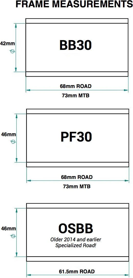 - Box width compatible of 68/73 and 61.5 mm (OSBB Specialized) / (Not compatible with BBright, BB386 Evo, BB30, BB86, BB92)