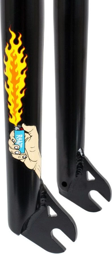 The Rant BMX “LIT AF” BMX Fork is made by 100% 4130 CrMo, has integrated bearing race and tapered legs with laser cut 5mm dropouts. The Rant BMX “LIT AF” BMX Fork also includes a threaded allyo compression top cap.Â