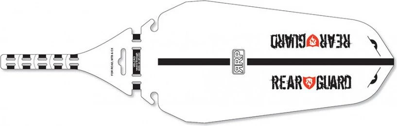 The perfect last minute mudguard. Very effective and fast fitting, RearGuard simply attaches the saddle rails with 2 velcro straps. It takes only 30 seconds! RearGuard offers great protections for your rear whether your on or off road. Thanks to a custom thickness polypropylene, RearGuard is not flimsy, but also offers an excellent fit, unlike some guards available. The tough fitting strap will work with any post including aero posts.Â