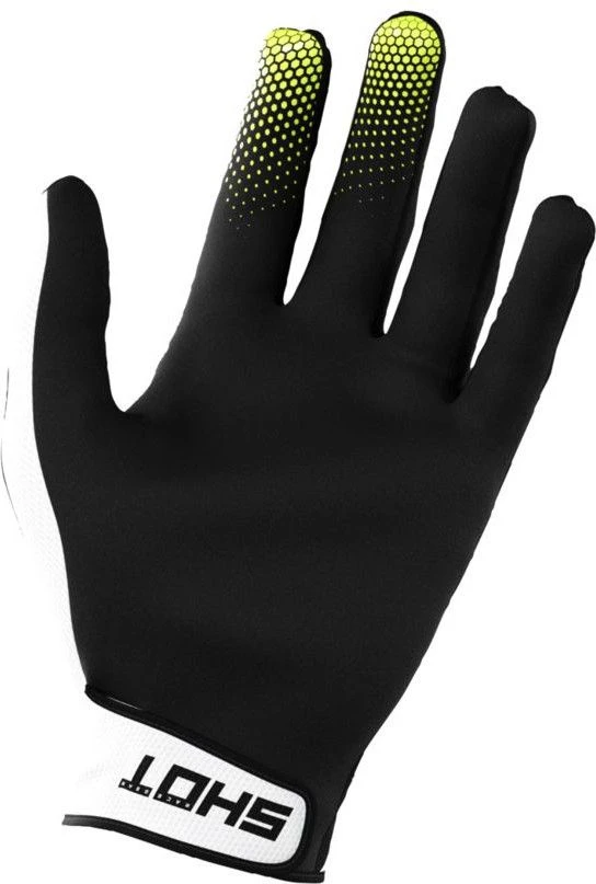 The upper part of the hand is made of a breathable and sturdy fabric. The Grotech palm offers excellent abrasion protection as well as excellent comfort. For better wrist support, Shot gloves are fitted with velcro tightening. The silicone prints on the index and middle fingers provide optimal grip on the handles and brake levers.