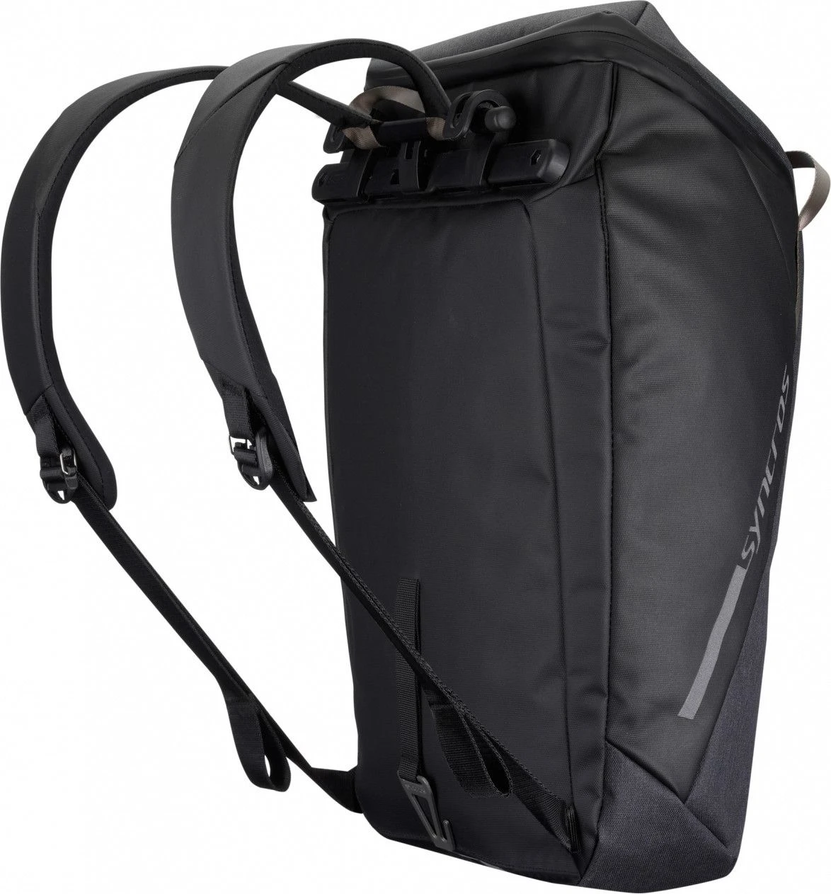 The ultimate compromise between commuting pannier and runabout city backpack, our weatherproof 2 in 1, pannier and backpack with detachable and storable backpack system is the one stop solution for busy executives on the go. The top zip closure allows for easy access while the Racktime hook fixation system with lower Syncros hook allows for secure on the bike fixation. Compatible with different racks (tubes with 9mm, 11mm and 14 mm). Reflective safety elements. Inside organizer pockets.