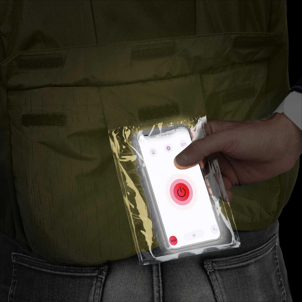 To be super smart even in the dark and in the rain. You just have to extract the phone pocket on your back to use your smartphone as a safety light.