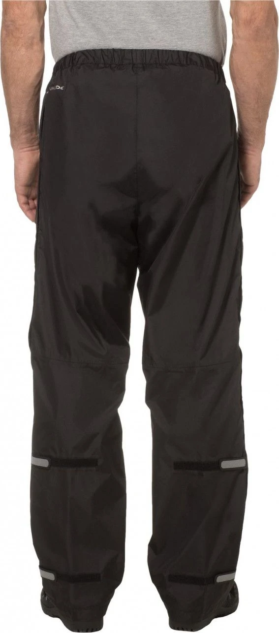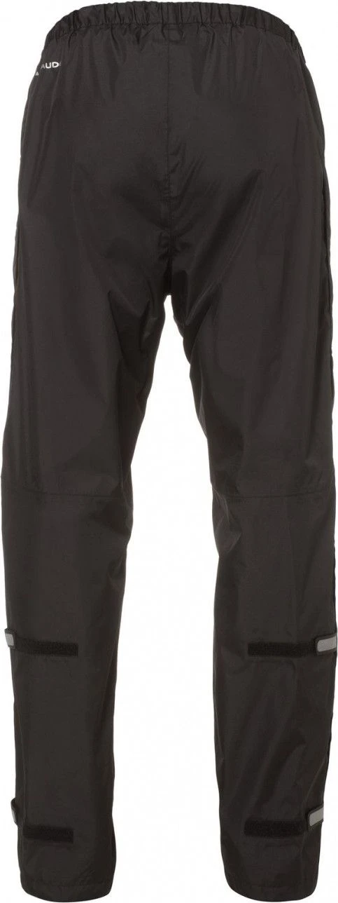 Our safe bet against the rain. These double-layered rain pants with mesh lining slip on quickly and provide effective protection against rain and dirt. Leg length adjustment with velcro closure. With full side zipper. This product is waterproofed with Eco Finish, ecological and fluorocarbon free (PFC). VAUDE’s Green Shape label guarantees an ecological, functional product made from sustainable materials.
