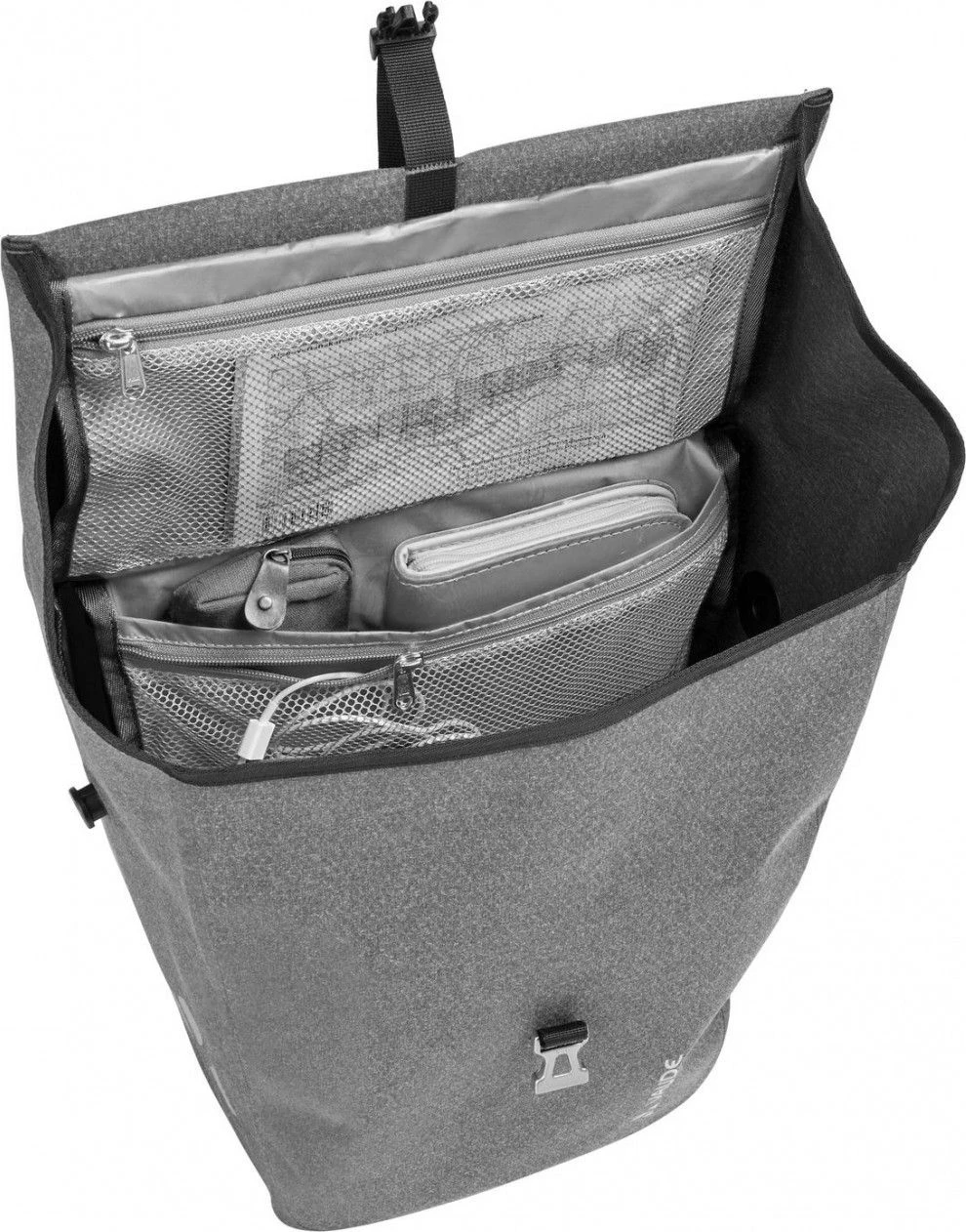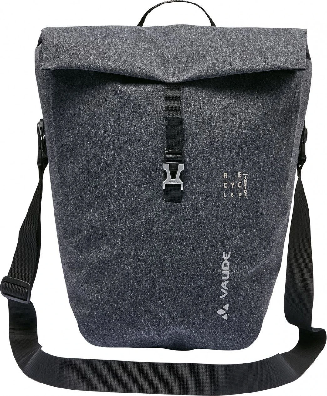 Vaude “ReCycle Pro“; the name says it all and it’s our highlight for a clear conscience! Our developers have succeeded and all fastener components are made with recycled plastic. The hardback panel is made from 64% recycled materials stemming from household waste. The robust, 100% recycled bag itself has a textile look and is completely PVC-free with hf-welding to make it waterproof.