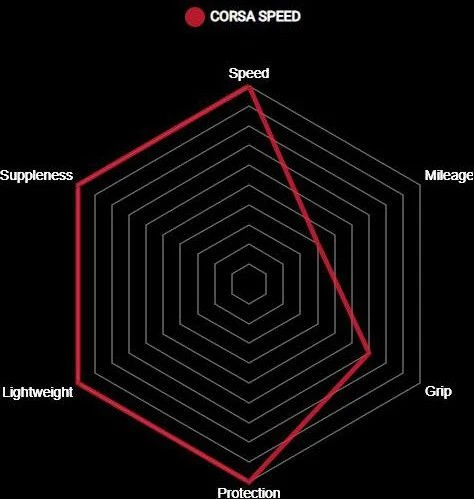 The fastest bicycle tire ever tested features the lightest tubeless-ready casing on the market. This race-day specific weapon has raised the bar on tire technology! The Corsa Speed uses a proprietary Graphene G+ ISOtech compound, which is then paired with an ultra-fine Corespun-T casing. The end result is a tire that maintains the lowest rolling resistance, while still providing the trademark Corsa suppleness, and outstanding wet weather grip. When used in tubeless form, the casing works perfectly with sealant, providing an even higher level of flat protection. This casing can also be used with an inner tube, if preferred. When absolute speed is your top priority, accept no substitute!Â