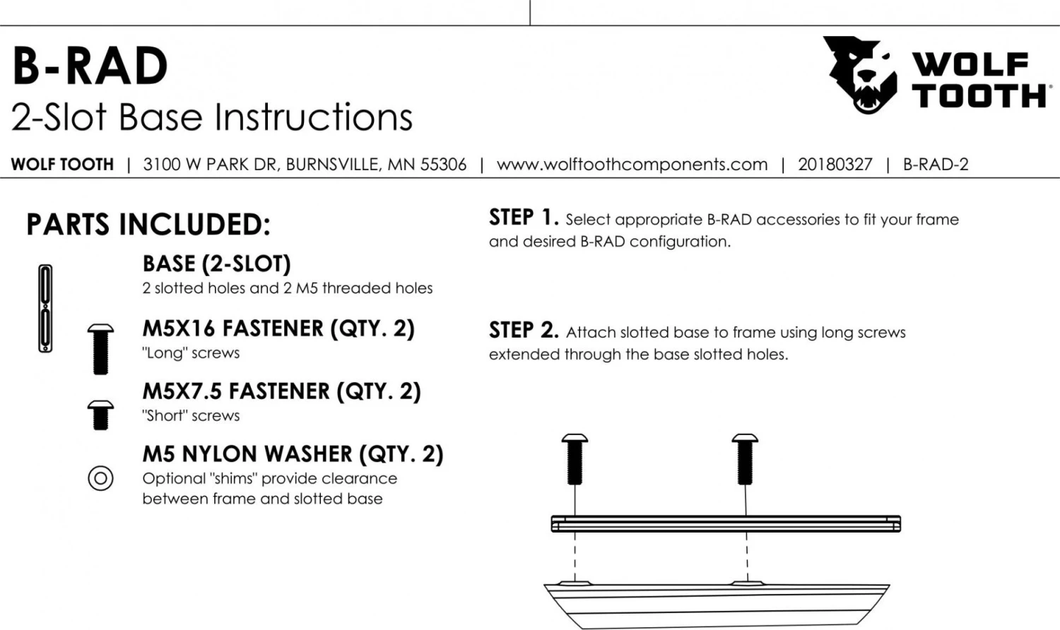 The 2-Slot Base of the Wolf Tooth B-RAD 2 can move bottle or other accessory to an optimal location even on a smaller or dual suspension frame.